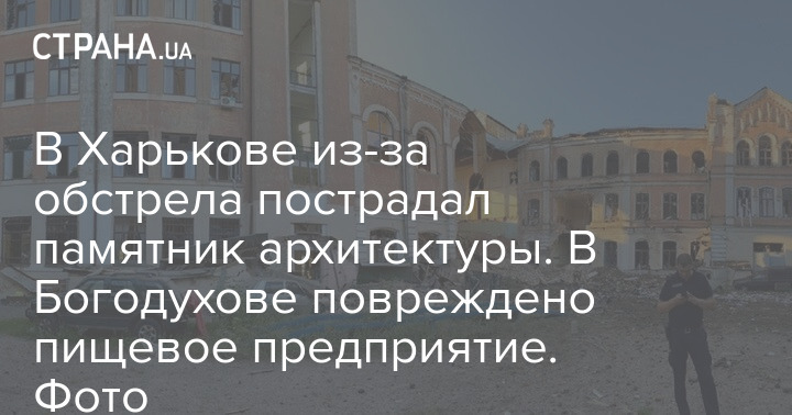В Харькове из-за обстрела пострадал памятник архитектуры. В Богодухове повреждено пищевое предприятие. Фото