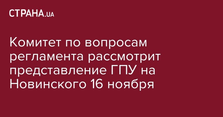 Комитет по вопросам Регламента и организации работы Верховной Рады Украины рассмотрит представление Генерального прокурора Украины о предоставлении согласия на привлечение к уголовной ответственности народного депутата от "Оппозиционного блока" Вадима Новинского 16 ноября. Об этом сообщили УНН в пресс-службе комитета.