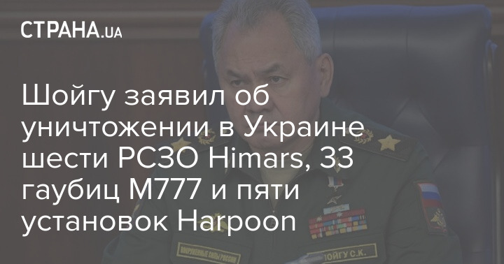 Шойгу заявил об уничтожении в Украине шести РСЗО Himars, 33 гаубиц М777 и пяти установок Harpoon