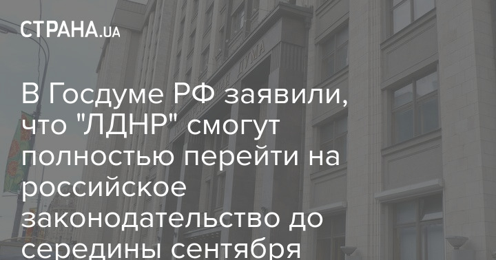 "ДНР" и "ЛНР" смогут полностью перейти на российское законодательство в течение месяца или полутора, то есть до середины сентября. Об этом заявил депутат Госдумы Виктор Водолацкий, отвечающий за координацию с "народным советом ЛНР", сообщают российские СМИ.