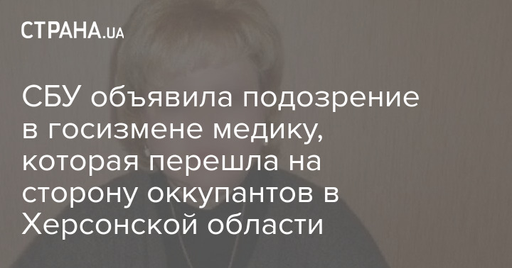 Правоохранители объявили подозрение в госизмене медику. Женщину обвиняют в сотрудничестве с россиянами на территории временно оккупированной Херсонской области.
