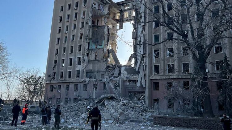 Здание облгосадминистрации после обстрела 29 марта 2022 года. Фото: Виталий Ким в Telegram