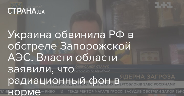 Старух говорит, что обстрел АЭС велся с дистанции примерно в один километр самими россиянами. Скриншот из трансляции