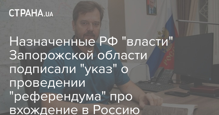 Назначенный Россией "глава администрации" Запорожской области Евгений Балицкий подписал распоряжение о проведении "референдума" о вхождении захваченной территории в состав РФ.