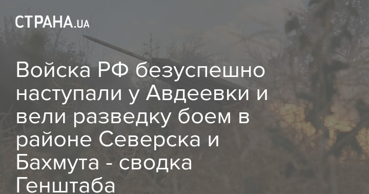 Войска РФ безуспешно наступали у Авдеевки и вели разведку боем в районе Северска и Бахмута - сводка Генштаба