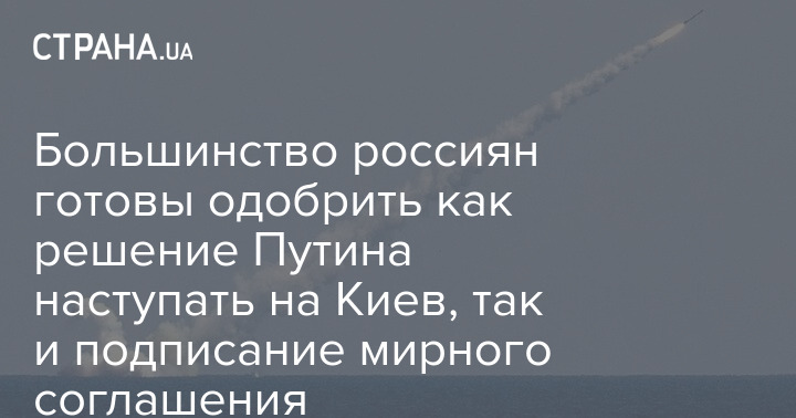 Большинство россиян готовы одобрить как решение Путина наступать на Киев, так и подписание мирного соглашения