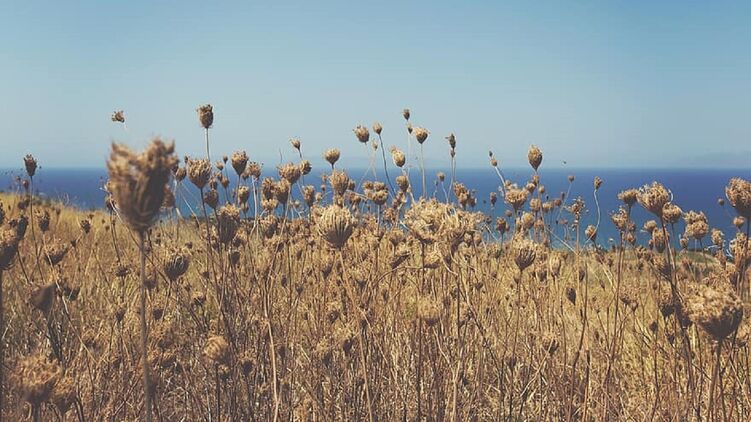 Сухая трава на фоне моря. Иллюстративное фото pikist