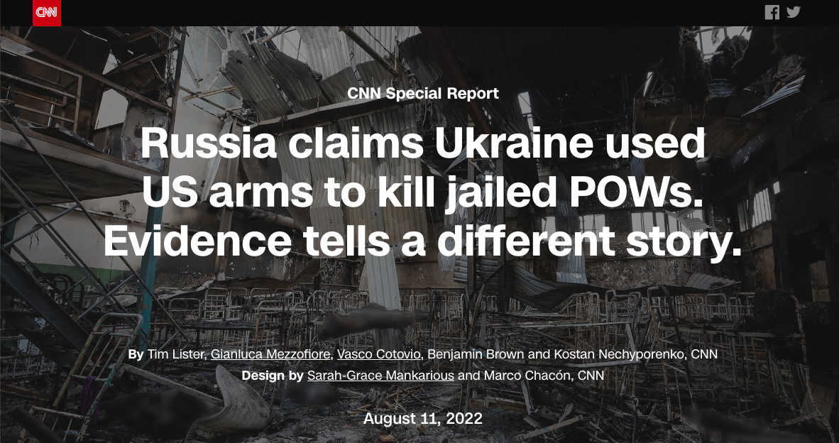 Американский телеканал CNN провел расследование гибели украинских 53 пленных в Еленовке и утверждает о несостоятельности российской версии произошедшего, что это был удар ВСУ из HIMARS.