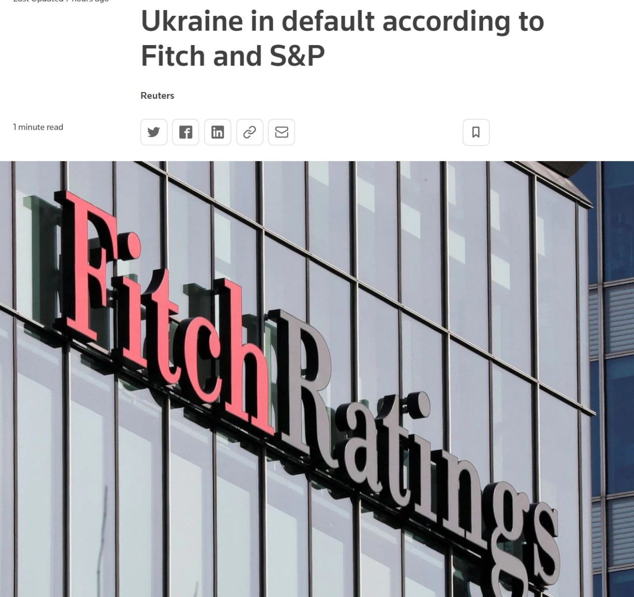 Украина объявила дефолт, считают глобальные рейтинговые агентства S&P и Fitch.