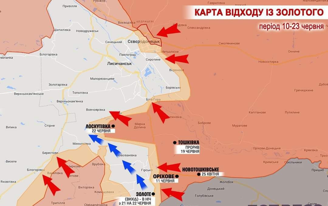 После Попасной россияне захватили Камышеваху и Врубовку. Таким образом, 19 июня, когда произошел прорыв в Тошковке, стало понятно, что нужно покидать Золотое из-за угрозы кольца. Иначе тогда мог случиться еще один Иловайск или Дебальцево. 20 июня уже было распоряжение отходить через Горское.
