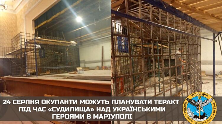 "С этой целью в срочном порядке переоборудуется помещение Мариупольской камерной филармонии. На сцене монтируются железные клетки, в которых будут содержать украинских Защитников. Также возводится несколько новых временных построек рядом с помещением", - пишут в ГУР МО Украины.