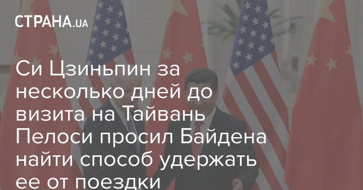 Председатель КНР Си Цзиньпин за несколько дней до визита на Тайвань спикера палаты представителей Нэнси Пелоси просил президента США Джо Байдена "найти способ удержать ее" от этой поездки, но получил отказ.