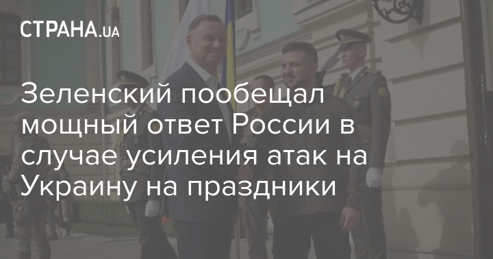 Президент Украины Владимир Зеленский заявил, что Россия может усилить удары в праздничные дни 23-24 августа и пообещал ответить на обстрелы. Об этом он заявил на совместном брифинге с президентом Польши Анджеем Дудой.
