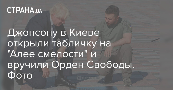 В Киеве на "Аллее смелости" рядом с Верховной Радой установили табличку с именем Бориса Джонсона. Ее посетили сам уходящий в отставку премьер Британии и президент Украины Владимир Зеленский.