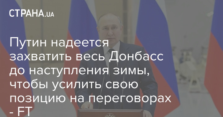 Россия надеется захватить весь Донбасс до наступления зимы. Пока РФ не получит контроль над всей Донецкой областью, Владимир Путин не будет готов к переговорам