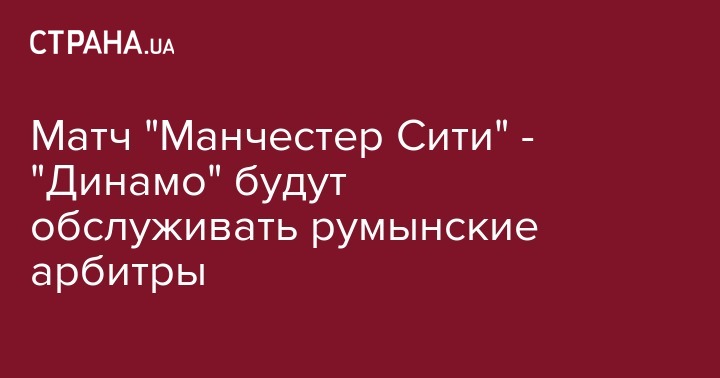 Судейский комитет УЕФА назначил румынскую бригаду судей на матч 1/8 Лиги чемпионов "Манчестер Сити" (Англия) - "Динамо" (Киев, Украина). Поединок состоится 15 марта на арене «Этихад» в 21:30.