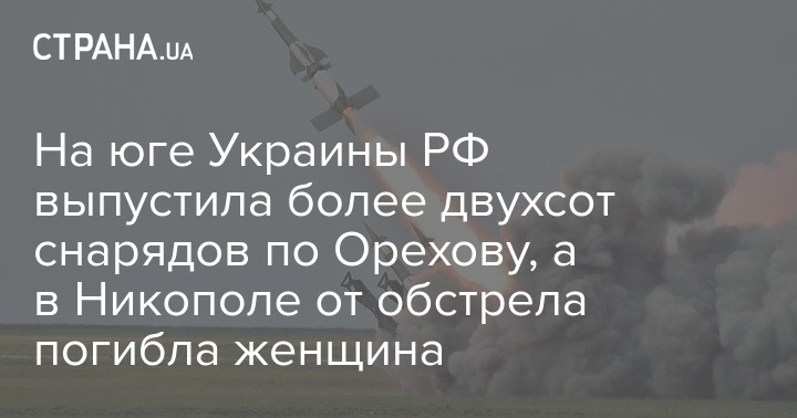 На юге Украины РФ выпустила более двухсот снарядов по Орехову, а в Никополе от обстрела погибла женщина