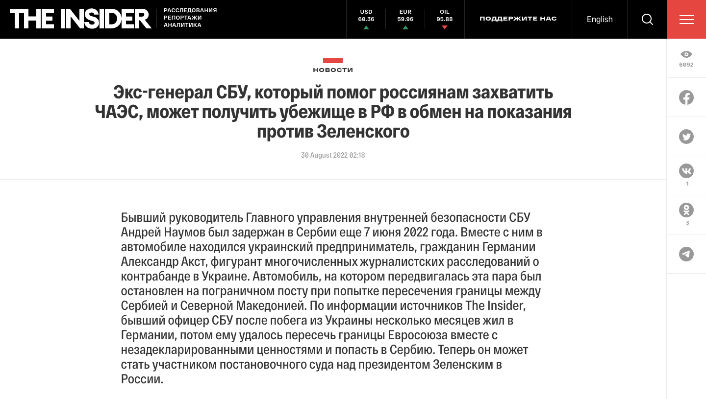 Наумов уехал из Украины накануне начала войны - за считанные часы до вторжения. Против него расследуется дело по статье "государственная измена". Как выяснили журналисты, 23 февраля, перед началом вторжения, Наумов в сопровождении нескольких человек покинул Украину. Его семья уехала раньше.