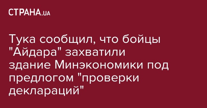 В одно из зданий Министерства экономики Украины, расположенное в столице Украины, произошло вторжение - 20-25 мужчин в военизированной форме представились бойцами батальона "Айдар", перепрыгнули через "вертушку" на пропускном пункте и ворвались в одно из помещений на бульваре Дружбы Народов.