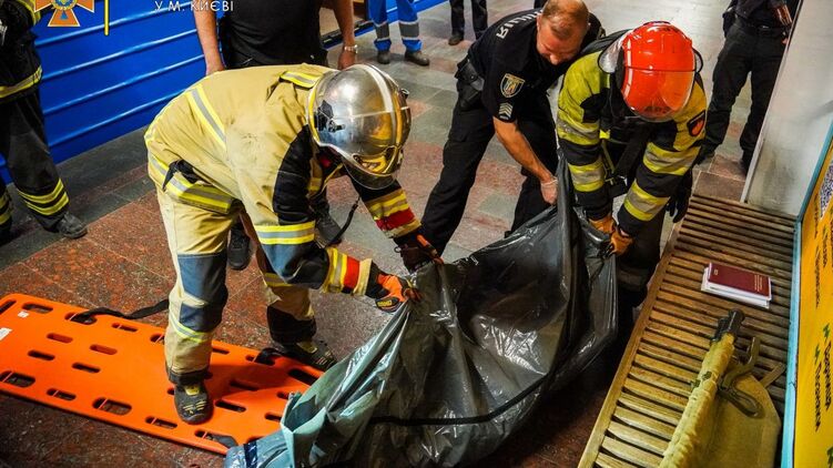 Киевская полиция подтвердила гибель мужчины под поездом метро. Опубликованы фото, как спасатели доставали тело