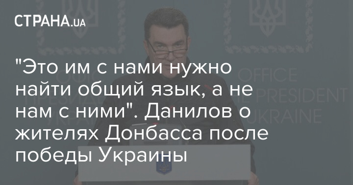 Секретарь СНБО Алексей Данилов заявил, что жителям ныне неподконтрольных Украине территорий Донецкой и Луганской областей после победы Украины надо будет находить общий язык с остальными украинцами, а не украинцам с ними.
