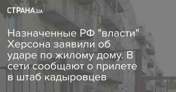 Назначенные РФ "власти" Херсона заявили об ударе по жилому дому. В сети сообщают о прилете в штаб кадыровцев