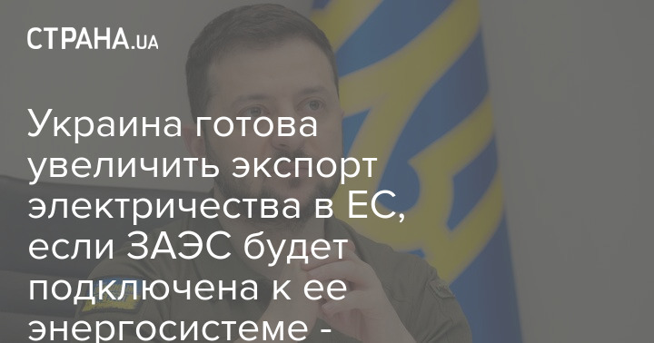 Президент Украины Владимир Зеленский заявил о готовности Украины увеличить экспорт электроэнергии в Евросоюз, если Запорожская АЭС будет оставаться в энергосистеме Украине.
