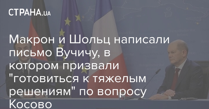 Президент Франции Эммануэль Макрон и канцлер Германии Олаф Шольц в своём совместном письме призвали президента Сербии Вучича "готовиться к тяжелым решениям" по вопросу Косово.