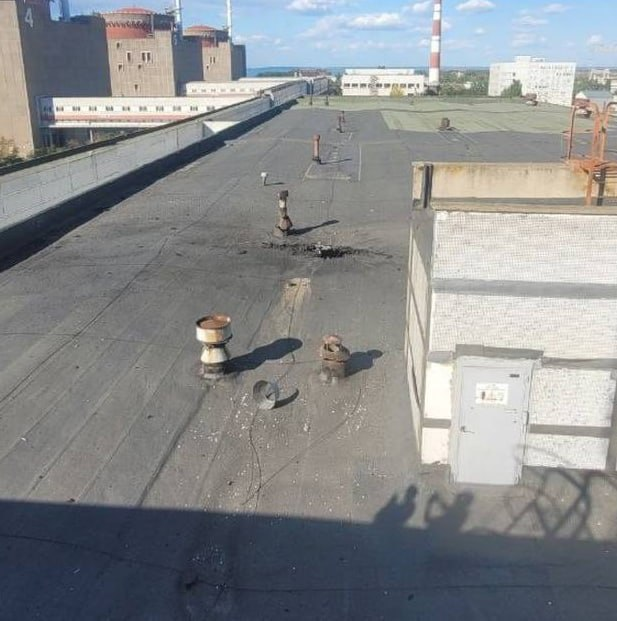 Российские телеграм-каналы публикуют фото последствий обстрела специального корпуса Запорожской атомной электростанции (АЭС).