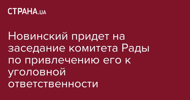 Народный депутат Вадим Новинский ("Оппозиционный блок") подтвердил свое присутствие на заседании парламентского комитета по вопросам регламента и организации работы Верховной Рады, который должен рассмотреть представление генерального прокурора на привлечение к уголовной ответственности парламентария. Само заседание запланировано на среду, 16 ноября на 15:00.