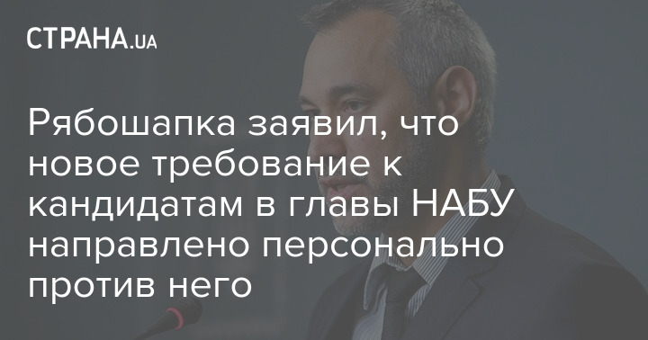 Экс-генпрокурор Руслан Рябошапка заявил, что ранее принятые парламентом правки в порядок проведения конкурса на должность директора НАБУ, согласно которым на эту должность не может претендовать тот, кто провёл за пределами Украины более 21 дня, направлены персонально против него.