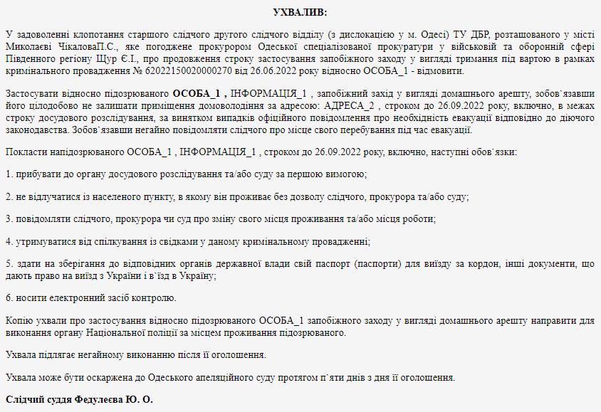 Киевский суд Одессы избрал ему меру пресечения в виде домашнего ареста.