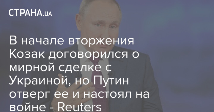 В начале вторжения Козак договорился о мирной сделке с Украиной, но Путин отверг ее и настоял на войне - Reuters