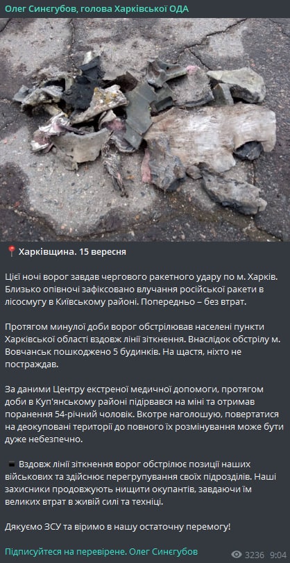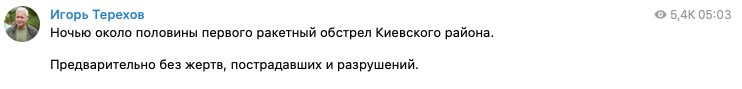 Центр Харькова ночью подвергся ракетному обстрелу, обошлось без жертв и разрушений - Терехов