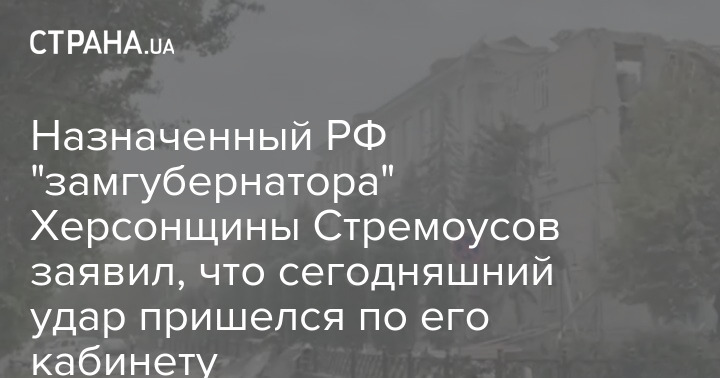 Назначенный РФ "замгубернатора" Херсонщины Стремоусов заявил, что сегодняшний удар пришелся по его кабинету