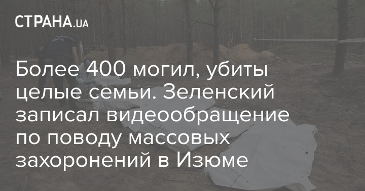 Президент Украины Владимир Зеленский записал видеообращение по поводу массовых захоронений в Изюме, фото которых он ранее обнародовал.