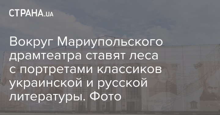 Вокруг Мариупольского драмтеатра ставят леса с портретами классиков украинской и русской литературы. Фото