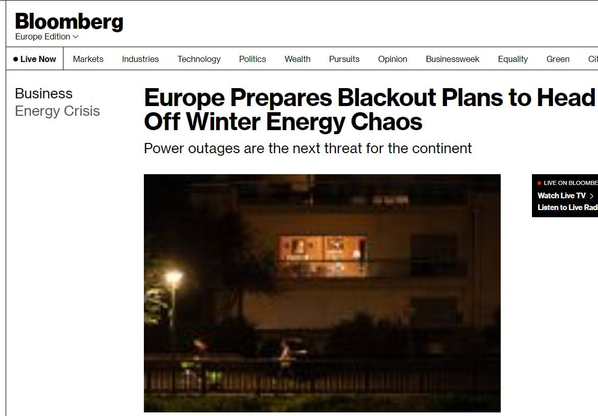 "Реальность такова, что Европе не хватает газа, если спрос не уменьшится, то предприятия будут вынуждены отключиться от сети. В самом худшем случае, это коснется и домохозяйств", — предупреждает опрошенный Bloobmerg глава отдела энергетики и климата лондонского аналитического центра Onward Эд Биркетт.