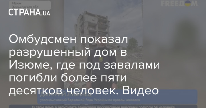 Омбудсмен Дмитрий Лубинец показал разрушенный многоквартирный дом в Изюме, под развалинами которого погибли 54 человека.