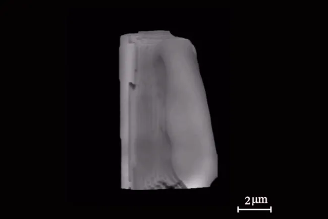 Обнаруженный исследователями минерал — это кристалл размером 10 на 7 на 4 микрометра. Но, несмотря на крохотный размер, ученым удалось определить атомную структуру кристалла и доказать, что он может быть представителем нового вида минералов. "Синьхуа" сопровождает свое сообщение изображением кристалла, сделанным на сканирующем электронном микроскопе.