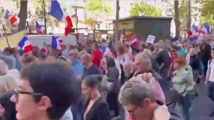 В Париже на площади Пале-Рояль прошла демонстрация с требованиями отставки президента Эммануэля Макрона и выхода Франции из Евросоюза и НАТО.