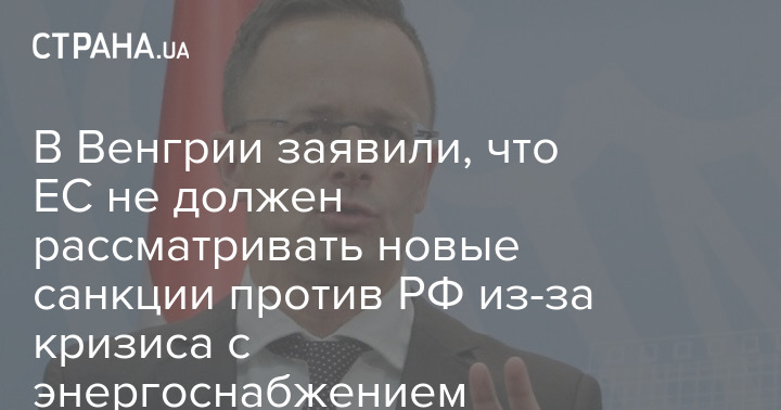 В Венгрии заявили, что ЕС не должен рассматривать новые санкции против РФ из-за кризиса с энергоснабжением