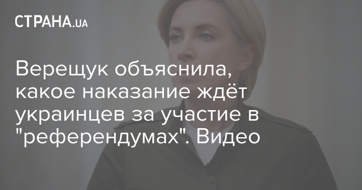 Вице-премьер Украины Ирина Верещук в комментарии "Стране" сообщила, грозит ли ответственность гражданам Украины на временно оккупированных территориях за участие в "референдумах" о присоединении к России.