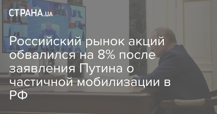 Российский рынок акций отреагировал на утреннее заявление президента РФ Владимира Путина о частичной мобилизации падением на 8%.