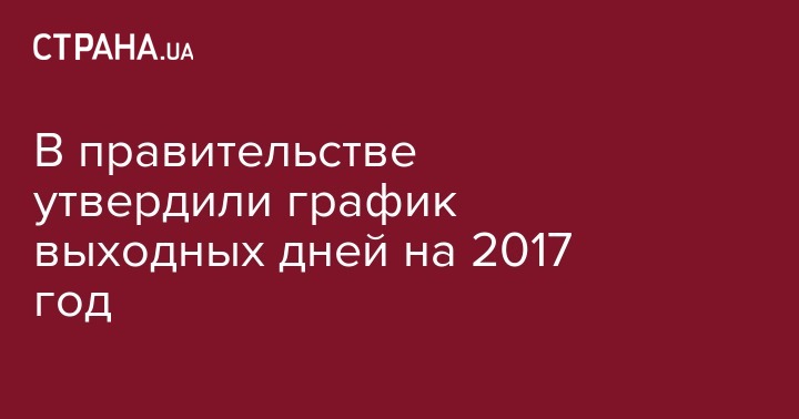 Как сообщала "Страна", Кабмин предлагает перенести рабочие дни перед праздниками в 2017 году. Речь идет о двух государственных праздниках Украины - 9 мая (День победы над нацизмом во Второй мировой войне) и 24 августа (День независимости Украины).