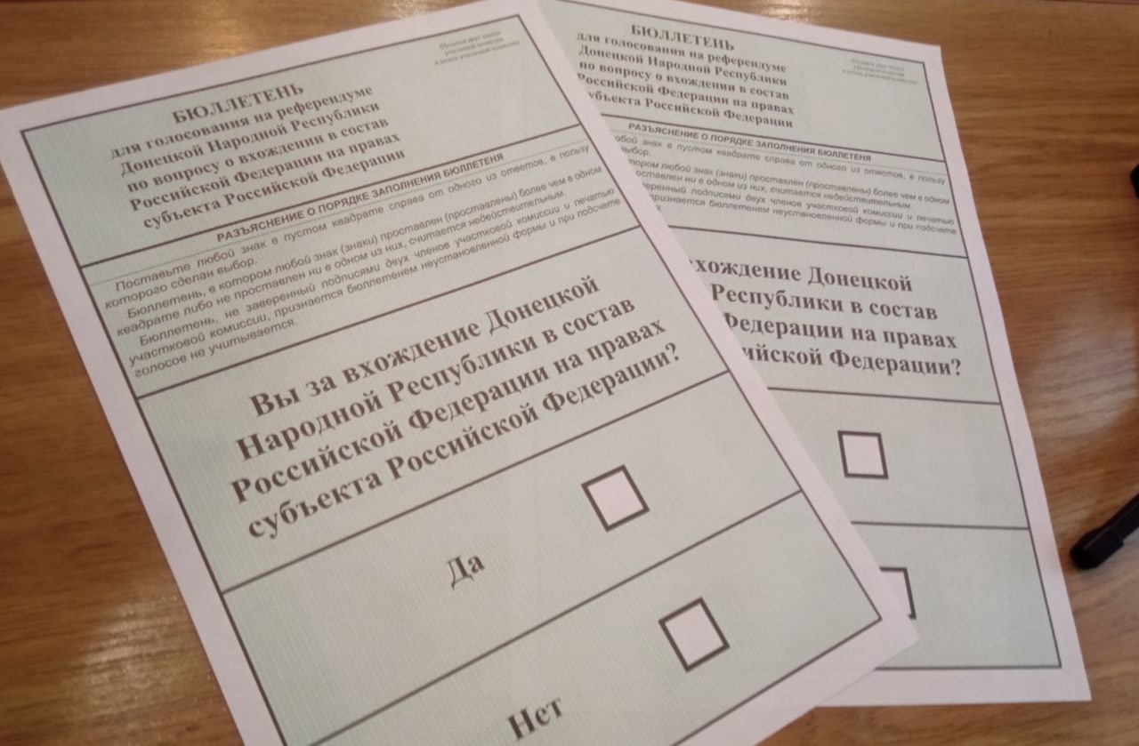 Вопросы в бюллетенях будут разные. У жителей Херсонской и Запорожской областей (точнее, их оккупированных районов), спросят, хотят ли они создать "независимое государство" и после этого стать частью РФ.