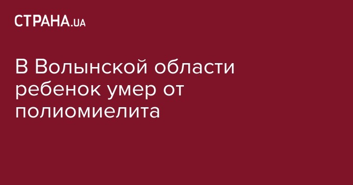В Волынской области умер 12-летний мальчик с признаками полиомиелита. Об этом сообщает издание "Район.Любомль".
