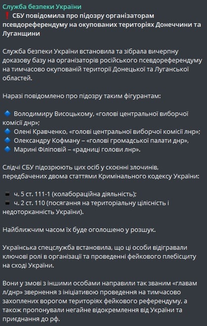 4. В Запорожской области, представители оккупационных властей, вместе с вооруженными российскими военными, совершают поквартирные обходы, заставляя местных жителей к участию в так называемом "референдуме". Такие же меры предпринимают и в населенных пунктах Луганской области.