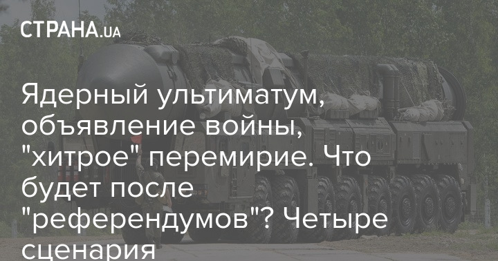 При этом, возможно, что ядерный ультиматум не будет озвучен сразу после аннексии украинских территорий, а будет отложен, чтоб оценить развитие ситуации на фронте. Если украинские войска не смогут более развить наступление на уже захваченные РФ территории, то ультиматум предъявлять не будут, воюя и дальше обычными вооружениями. А если возникнет, например, реальная угроза для РФ потерять Херсон и правый берег Днепра (или же какую-либо другую территорию), то ультиматум может быть предъявлен.