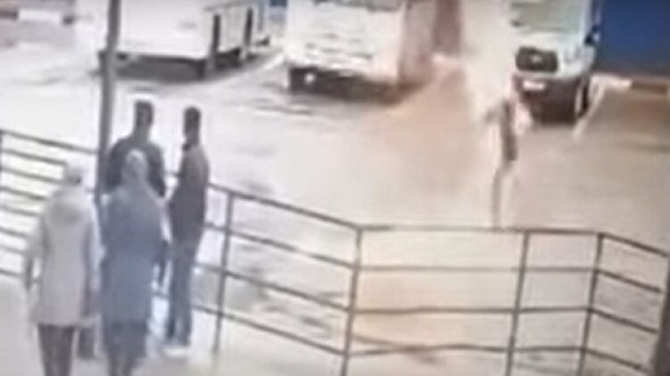 Мужчина поджег себя на вокзале. Скриншот из видео